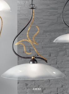 Diese exklusive Pendelleuchte der Serie "Amabile" wurde von Uta Kögl designt. Die edle Leuchte ist aus Metall in der Farbgestaltung rost antik gold gefertigt worden. Das Design beinhaltet aufwendig gestaltete goldene Elemente. Das hochwertige Glas beginnt weiß und geht fließend über zu Klarglas. Eine sehr wertvolle Handarbeit, welche sich wunderbar in den Landhausstil einbringen lässt, aber auch jede moderne Einrichtung bereichert.