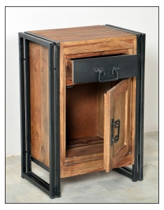 Im Vintage Look aus Shesham Holz (asiatische Akazie) gefertigtes exklusives Möbelstück mit Altmetallramen und gewollten Gebrauchsspuren aus dem Qualitätshaus "SIT Möbel".