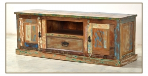 Ein schönes Möbelstück aus altem Recyclingholz (Fischerboote usw.) mit gewollten starken Gebrauchsspuren und alten Farbresten, welche überlackiert wurden. Jedes Möbelstück aus dieser Serie könnte für sich eine eigene Geschichte erzählen. Die alten Spuren des Holzes wurden bewusst belassen um den südländischen Flair in Ihre eigenen vier Wände zu bringen. Wenn Sie diese Natürlichkeit mögen, haben Sie mit diesen Möbeln, egal ob Einzelstück oder mehrere Exemplare, einen garantierten Blickfang in Ihrem Ambiente. Auf Garantie ist jedes einzelne Möbelstück ein Unikat und in seiner speziellen Art nirgends mehr zu finden!