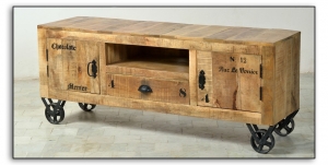 Etwas rustikal und anders als gewohnt kommt dieses Lowboard daher. Mit einem antiken Hauch und viel Charme passt dieses TV-Lowboard nicht nur in ein Loft sondern haben ihr Dasein auch in jeder anderen individuell eingerichteten Wohnung.