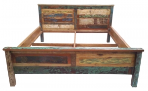 Dieses sehr schöne Bett im Vintage - Stil wurde aus dem Holz alter Fischerboote von Hand gefertigt. Eine kleine Manufaktur aus Indien hat sich auf diese Herstellungsart spezialisiert. Jedes einzelne Stück Holz gibt es nur ein einziges Mal in seiner Farbauswahl auf dieser Welt. Somit erhalten Sie ein 100%iges Unikat. Gekonnt wird jedes Stück Holz mit den anderen zusammengefügt, so das es farblich ein stimmiges Bild ergiebt. Jeder Artikel unterliegt einer strengen Endkontrolle bevor er auf den europäischen Markt in den Verkauf kommt. Dieses Bett bringt Ihnen ein südländisches Flair in Ihr Schlafzimmer und passt auch wunderbar als Einzelstück in ein sonst modernes Ambiente.