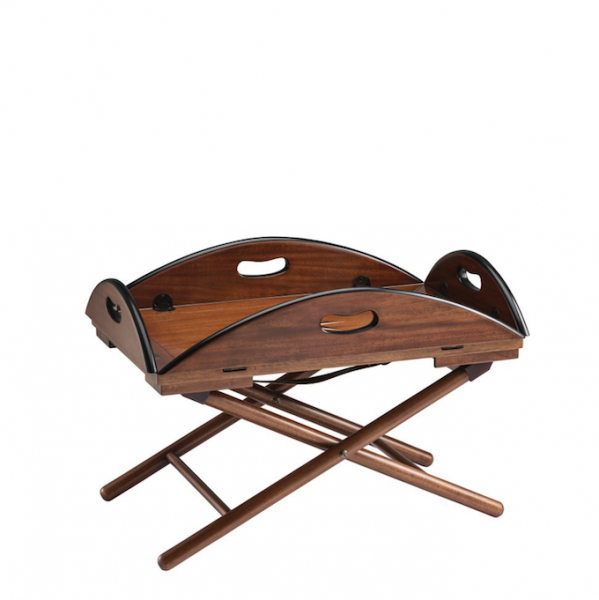 Die Seitenflächen lassen sich nach oben klappen um einen sicheren Halt für Flaschen und Gläser zu gewährleisten. Sollte der Butler Tisch nicht mehr gebraucht werden, lässt er sich zusammengeklappt wunderbar in jede kleine Nische verstauen. Ein edles Möbelstück, welches durch seine solide Fertigung in Handarbeit und den ausgewählten Materialien für die Ewigkeit gebaut ist.
